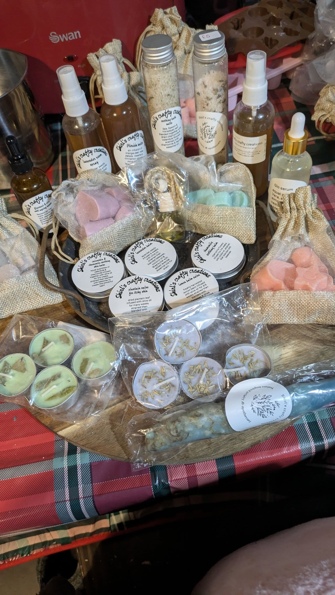 I will be offering naturally home made products using essential oils of my choice added to natural carrier oils such as jojoba, grapeseed, almond, avocado. olive or sunflower oil with added dried herbs or flowers and crystals relating to whatever the theme of the item. items I am able to offer at the moment - fly repellant roll on, car air freshener, home reed diffuser, made up bath soaks, lip balms, skin salves, infused oils for body, natural cleaning sprays & room fragrance sprays,